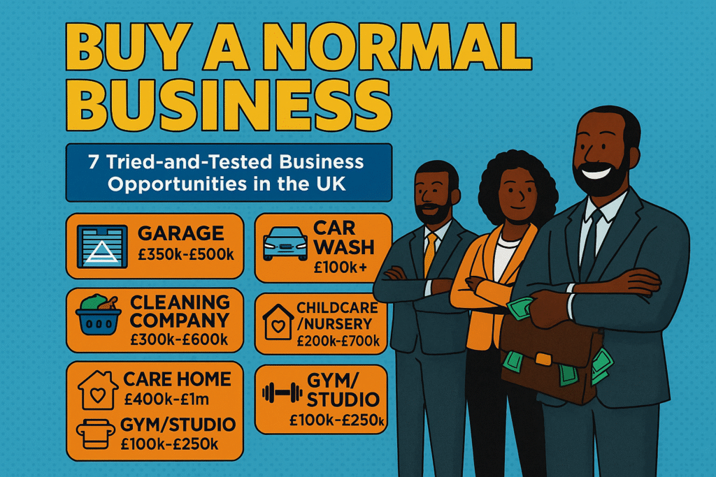 - Use capital gains and savings to buy a small local business (£100k–£300k).