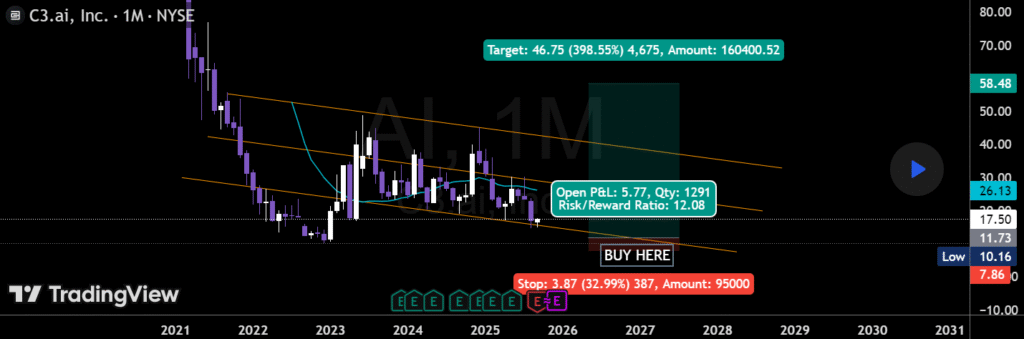 C3.ai (AI) is a pure-play AI software provider, building customizable enterprise solutions across energy, healthcare, and manufacturing. Its volatility is high, but so is its growth potential.