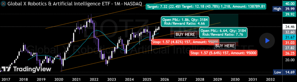- Global X Robotics & Artificial Intelligence ETF (BOTZ) focuses on robotics and automation.