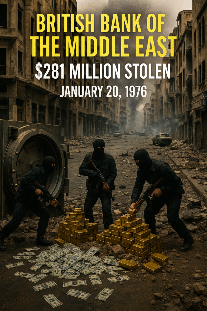 Set during the chaos of the Lebanese Civil War, this heist involved a group of armed Palestinian militants affiliated with the PLO. Using explosives, they blasted into the British Bank of the Middle Eastโs main vault in Beirut, stealing gold bars, cash, stocks, and jewelry worth $25 million at the time, adjusted today to over $280 million.